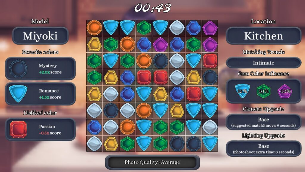 There’ll be several other aspects that will influence the gameplay. During the photoshoot, which takes the form of a match 3, you’ll get bonuses depending on the model: