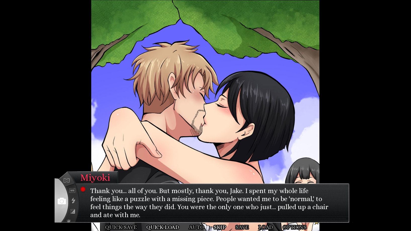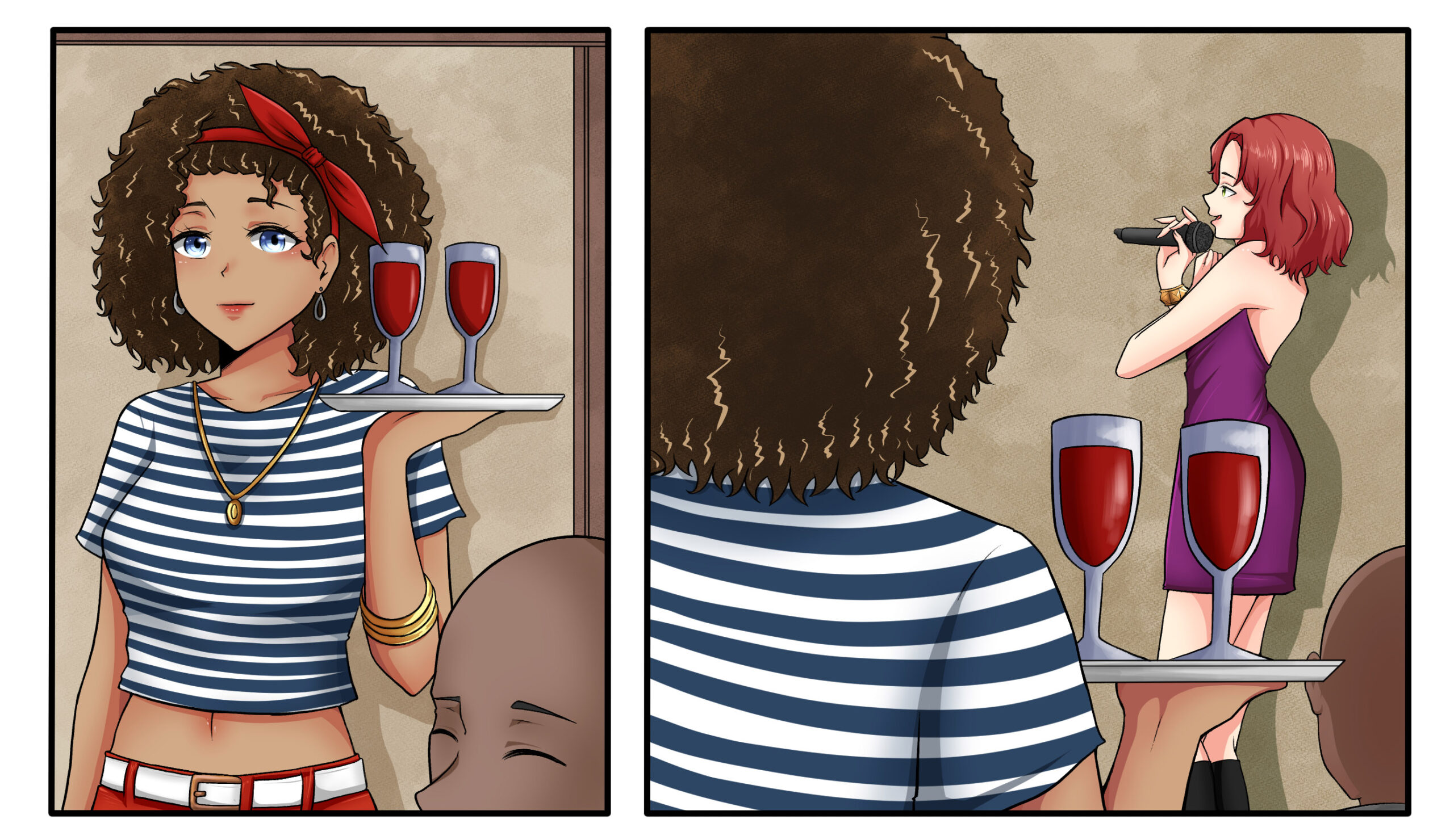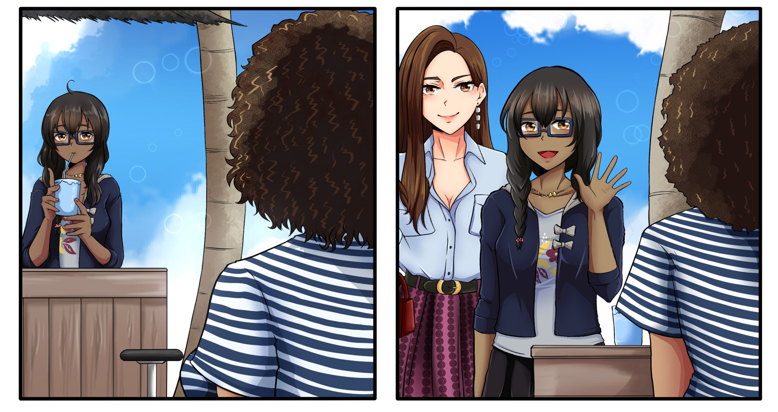 As I posted already before, the character images of this game were initially for another game. It was still a yuri game, but more toward the romantic side, set in the 1980s. It was a story about a black woman who falls in love with a rich white girl who is supposed to marry a man. They would meet each year toward the end of summer (that was also the working title of the game) to talk. Since it was set in the 1980s, the world was much harder back then for lesbian women, and you can imagine many of the topics and situations (also the social class difference).