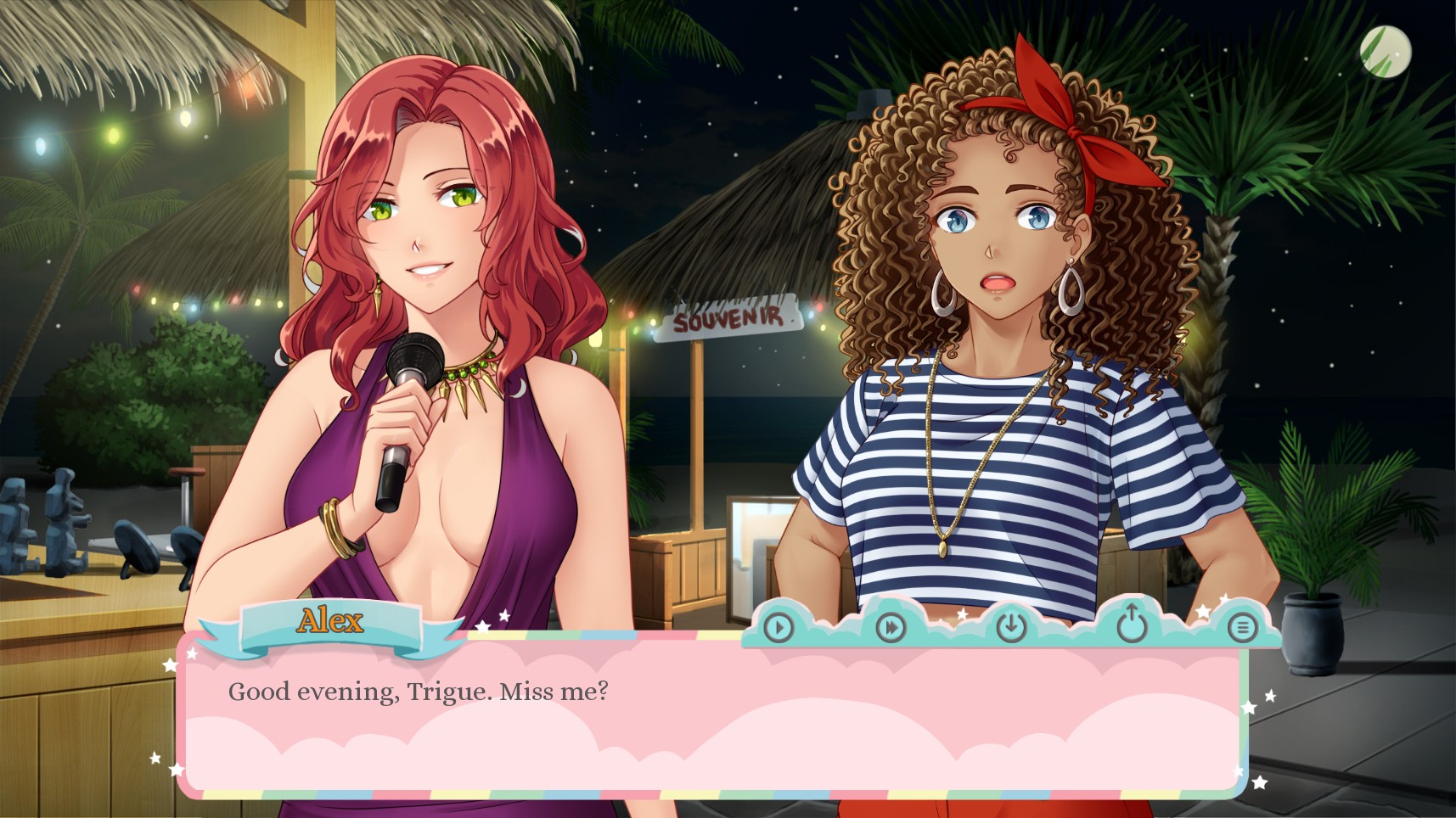 The setting is now modern times. The location is the island of Trigue, which made a perfect way to have Alex show up again as a love interest (it rarely happened in my games that a character was a love interest in two different stories with different protagonists!).
